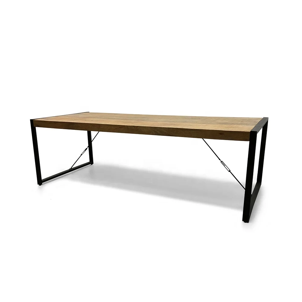 Промышленный Железный деревянный обеденный стол, винтажный античный обеденный стол из грубой древесины манго 260x100, деревенский обеденный стол в металлической рамке