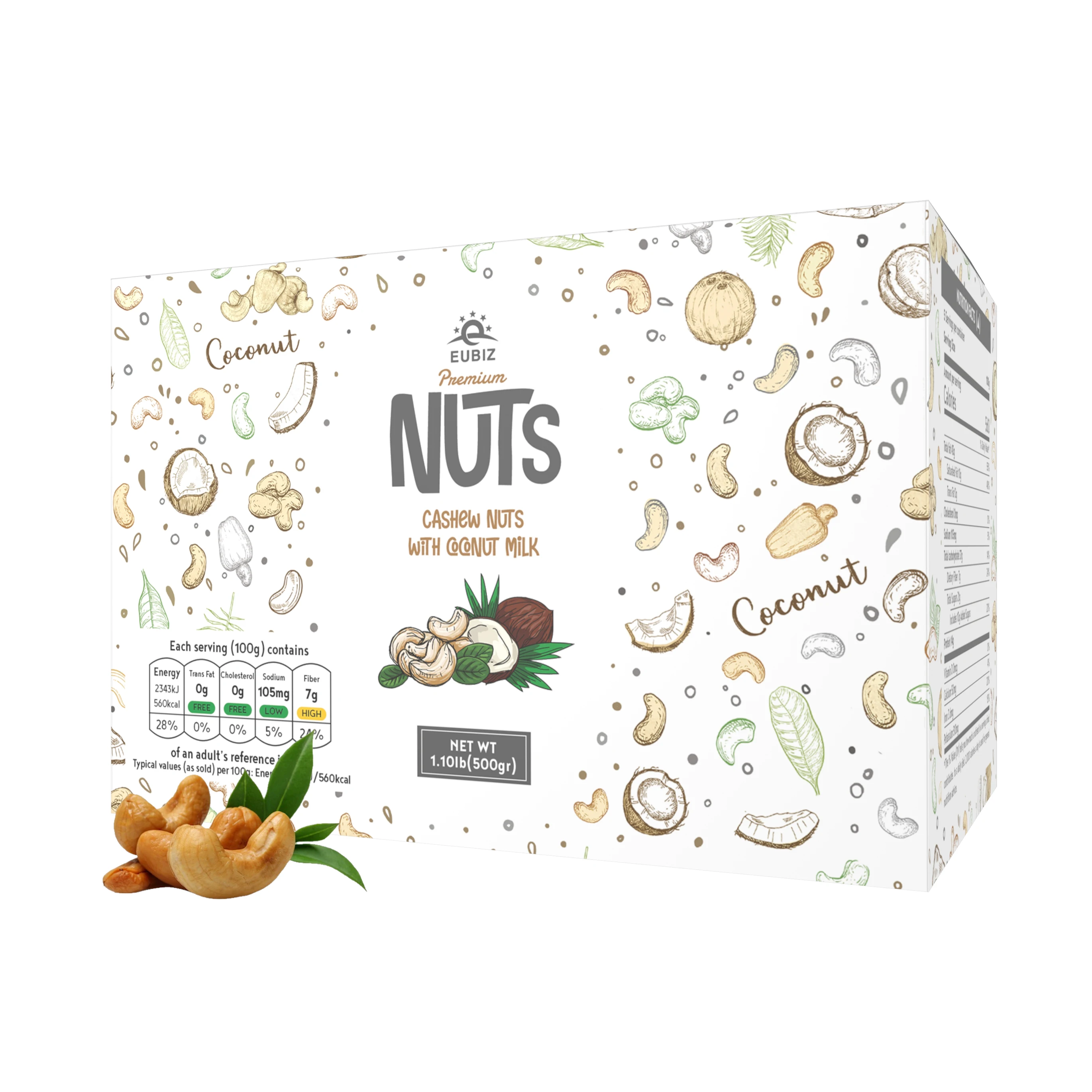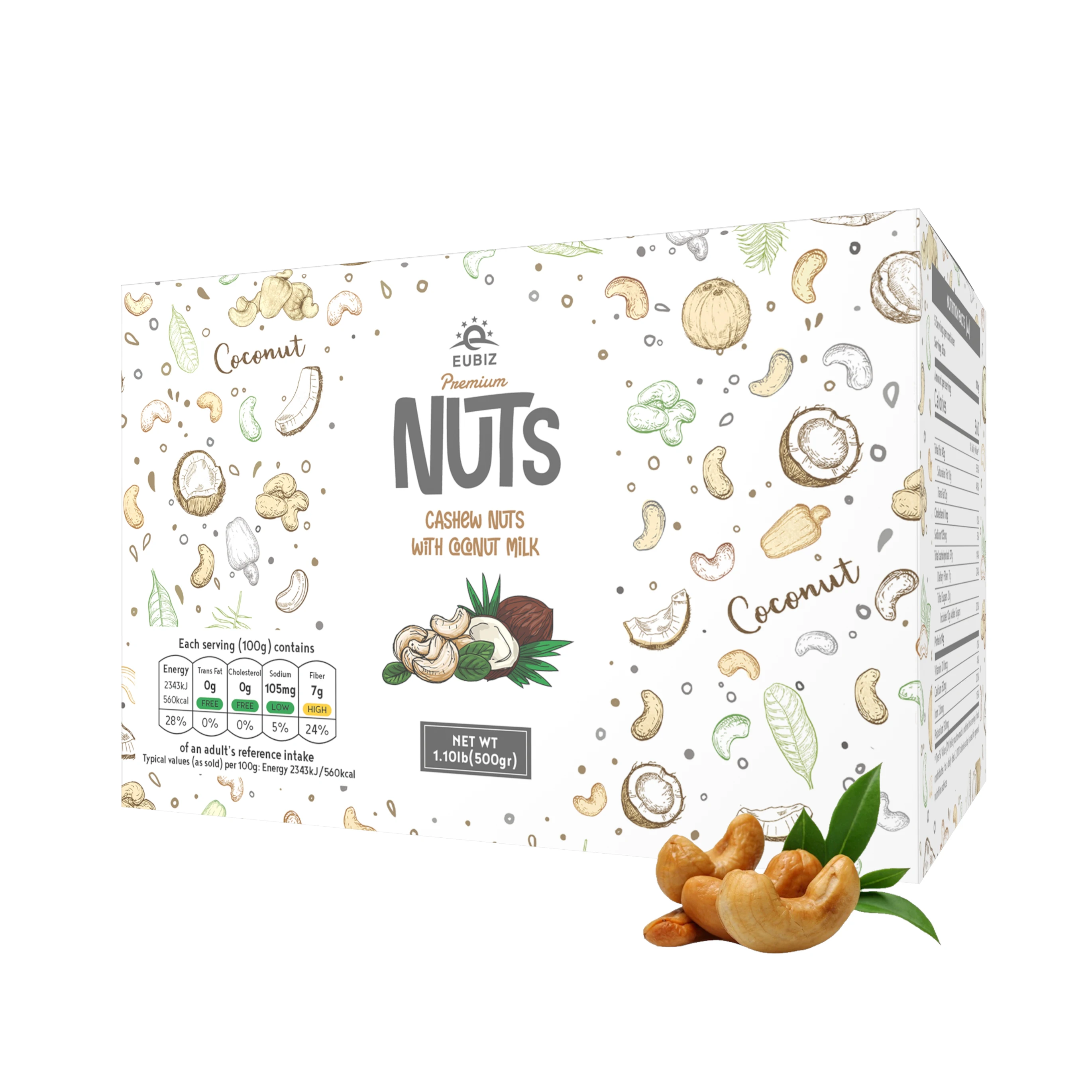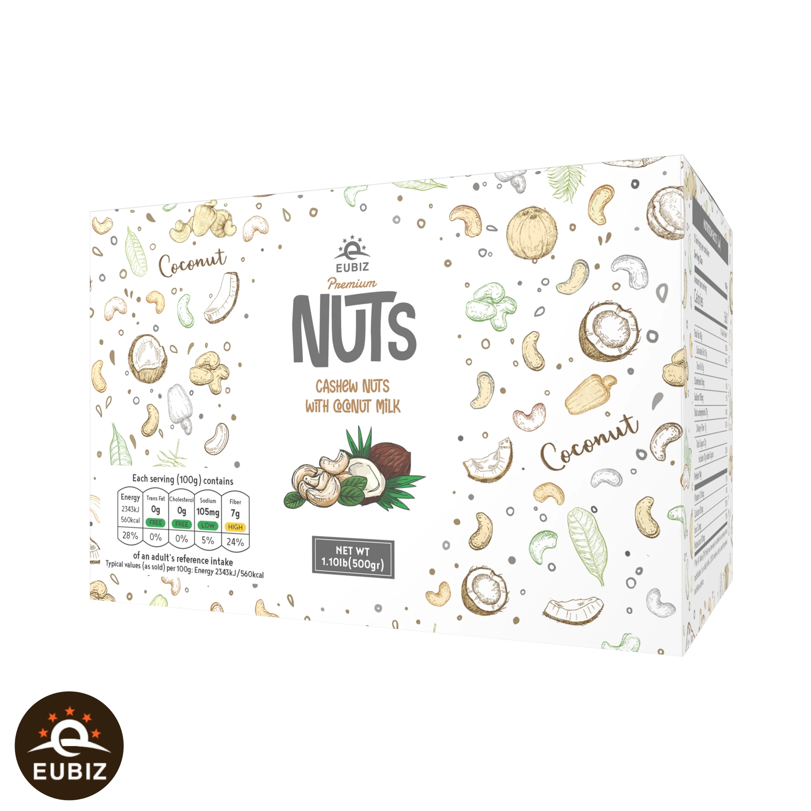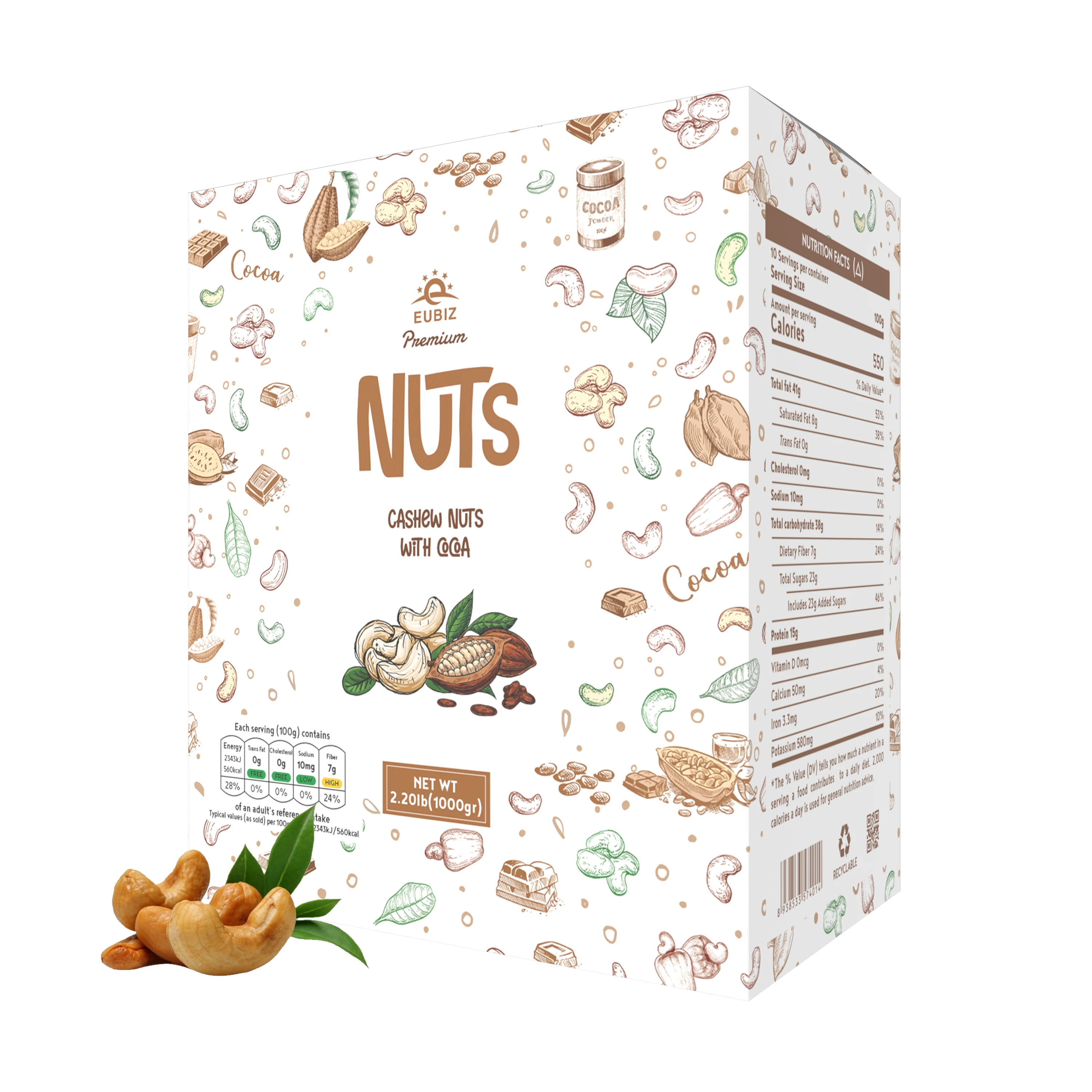 EUBIZ аромат кешью и какао (какао)-оптовая продажа вьетнамских орехов кешью-в коробке (бумага) 1000 г (35,3 унции)-без тестовой оболочки-во Вьетнаме