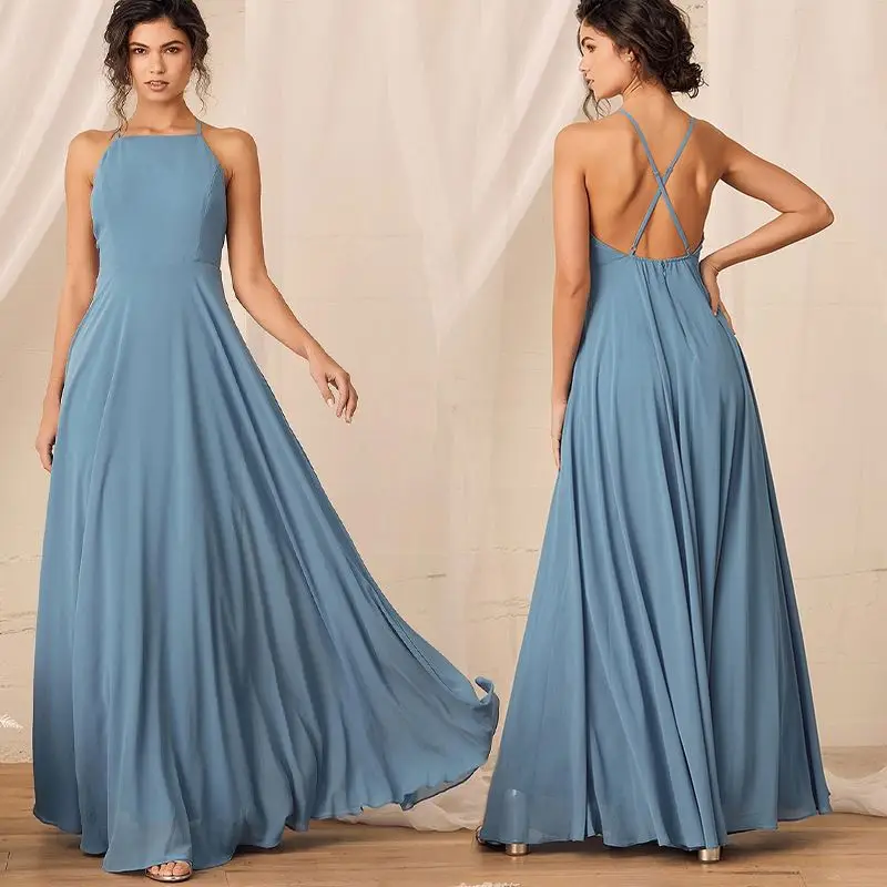 Высококачественное элегантное вечернее платье без рукавов с открытой спиной, синие платья макси для подружки невесты