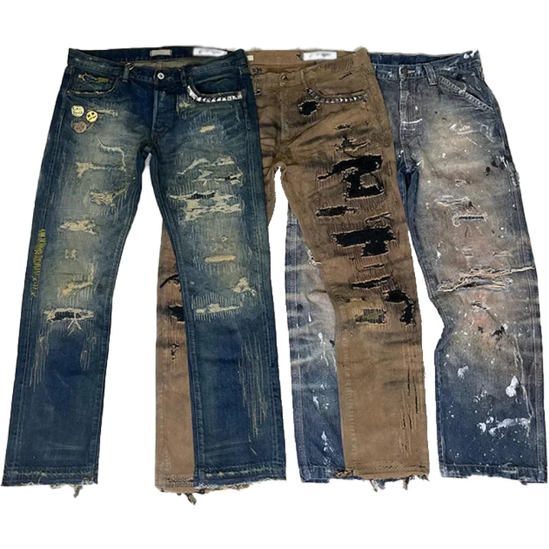 Мужские винтажные рваные джинсы