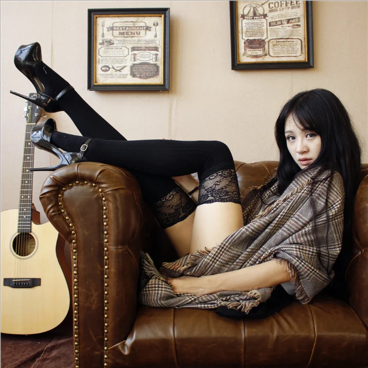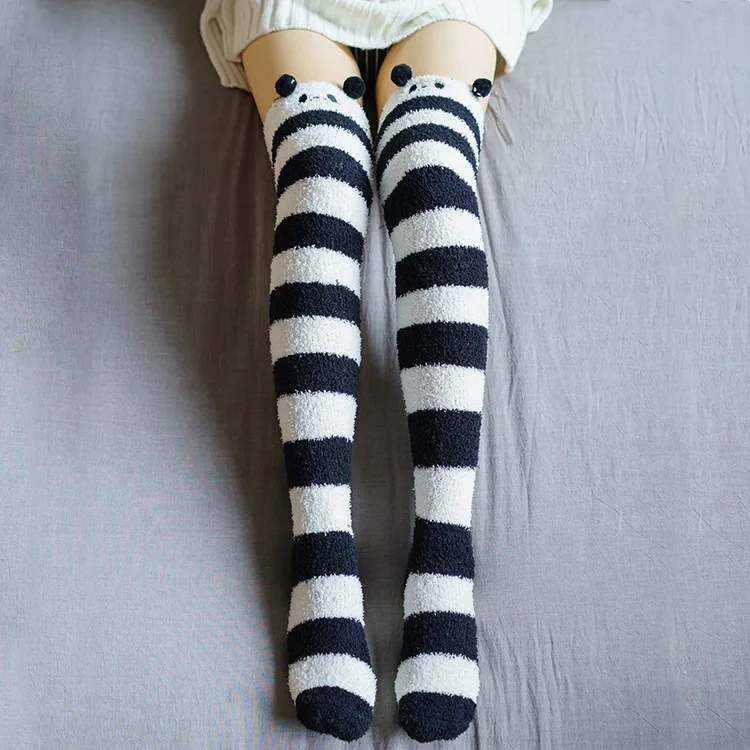 Женские чулки выше колена, японские чулки до бедра, полосатые высокие чулки, цветные полосатые чулки
