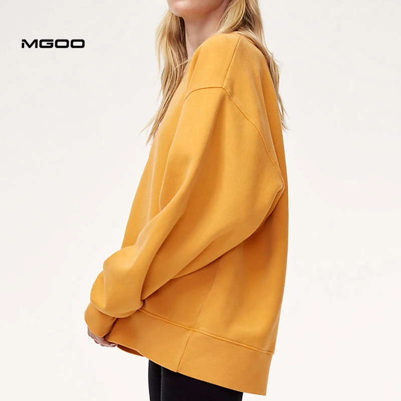 Толстовка MGOO женская с круглым вырезом, однотонный хлопковый Свитшот оверсайз в французском махровом стиле, однотонная