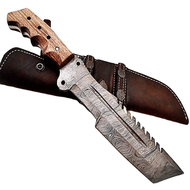 Красивый Походный нож-трекер из дамасской стали для охоты и кемпинга 14,0 дюймов с ручкой из розового дерева и кожаным футляром