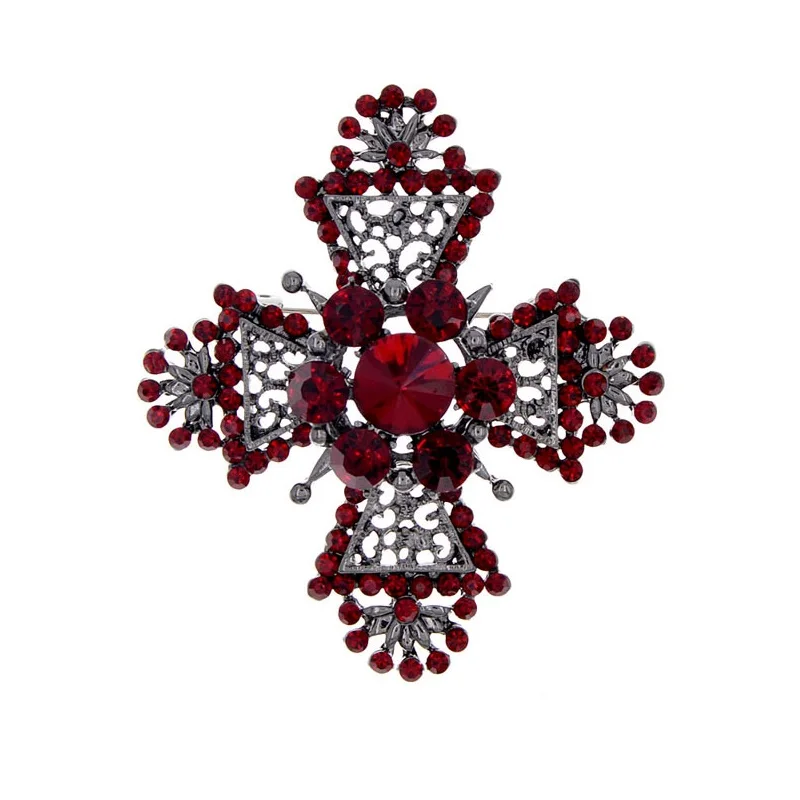Горный хрусталь кросс Броши для женщин в готическом стиле, с вырезами, Винтажная брошь Ювелирное Украшение, для вечеринки, аксессуары 2 вида цветов выбрать дешевая цена