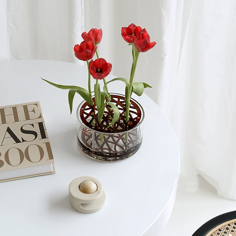 Цветочный держатель для домашнего декора, декоративный центральный элемент из гофрированного стекла и акриловой вазы