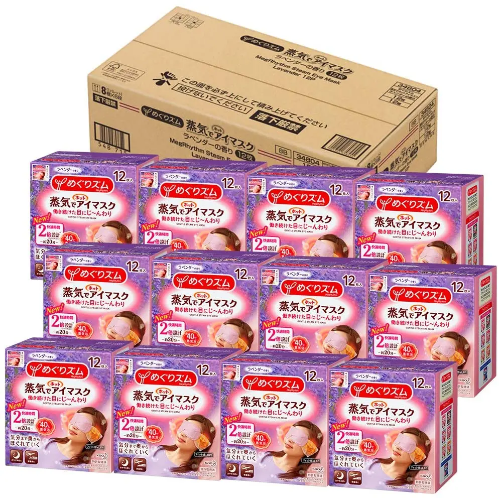 Маска для глаз Kao MegRhythm с нежным паром, 12 шт., сделано в Японии, Уход за глазами для взрослых с ароматом лаванды, успокаивающий разум