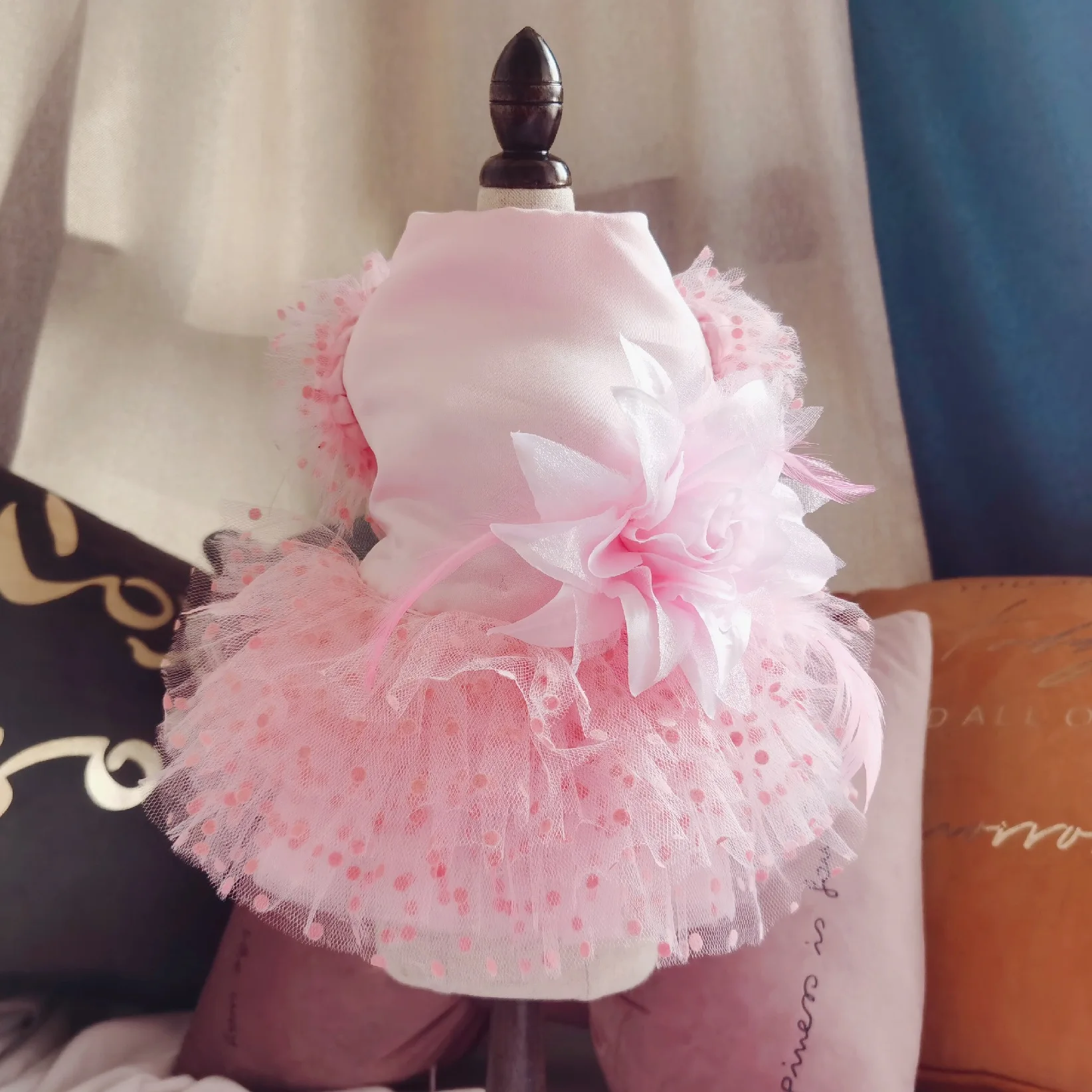 Прямая продажа с фабрики, товары для домашних животных, оптовая продажа, белая розовая собака, свадебное кружевное платье из пряжи, одежда для домашних животных