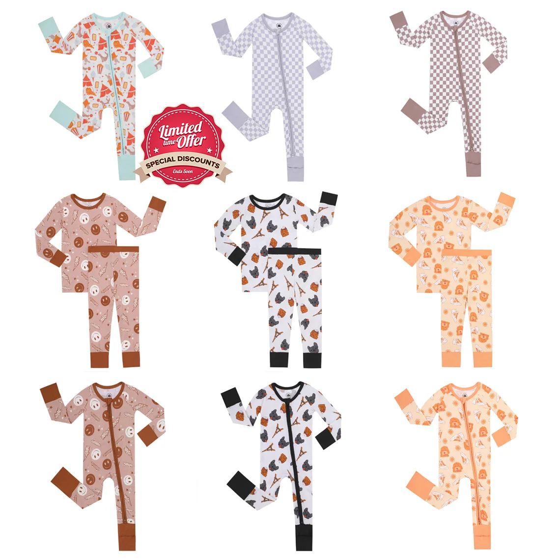 Популярный Детский комбинезон на молнии с длинным рукавом бамбуковый детский заказ пижама Пижама для сна