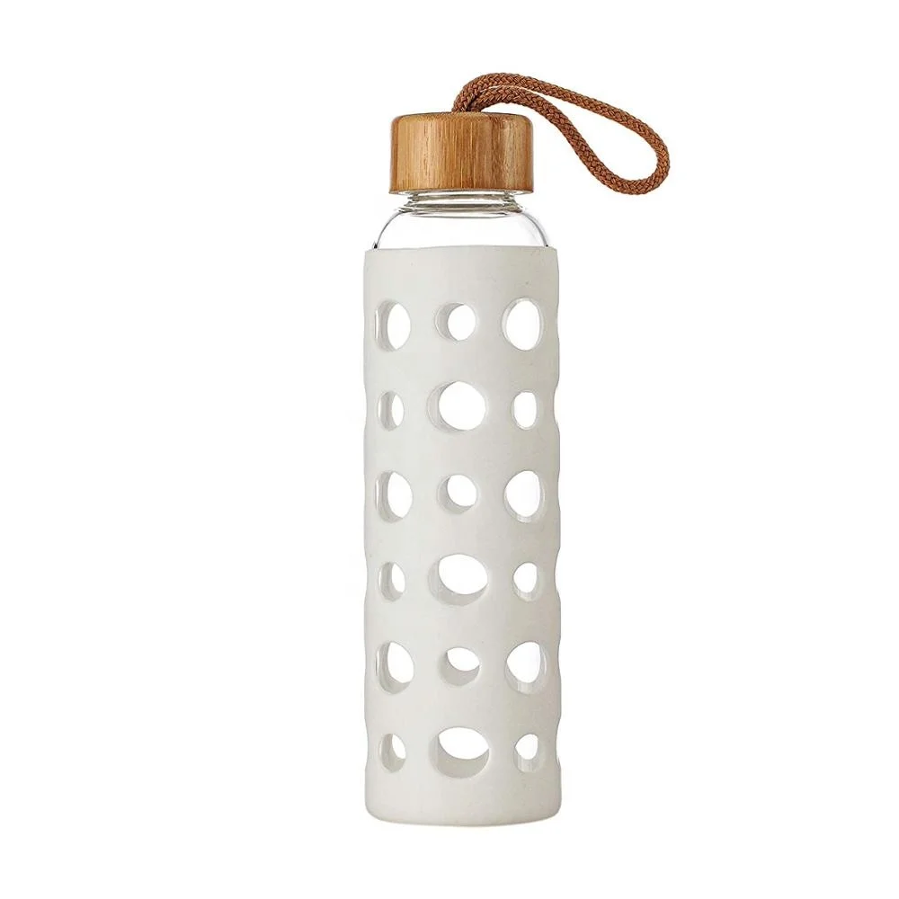550 мл Новый дизайн маленькая бамбуковая крышка бутылка для воды из боросиликатного стекла с силиконовым рукавом