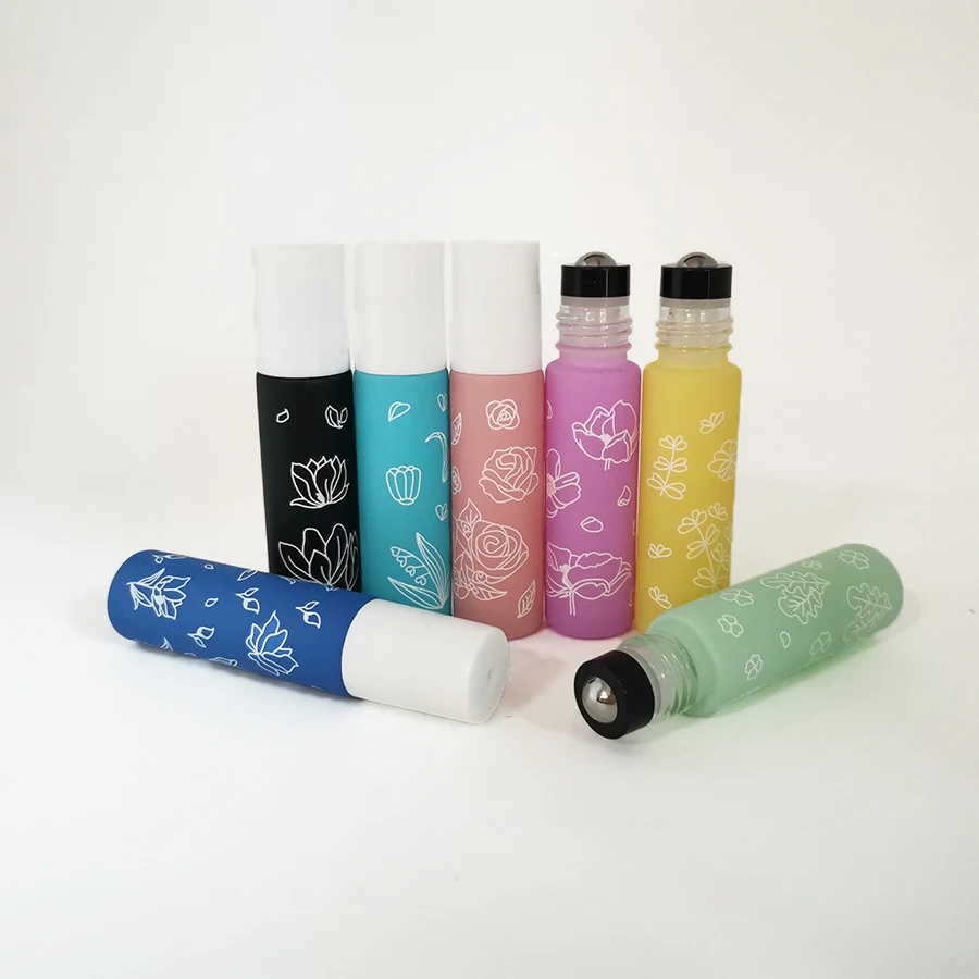 Готово к отправке, цветочные печатных стеклянная бутылка 10 мл пастельных роликовая стеклянная бутылка с стальной ролик с защитой от повреждений и кольцом для эфирных масел