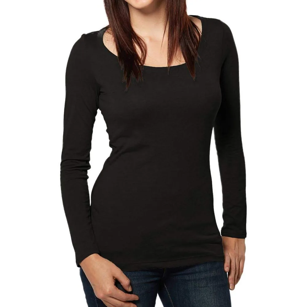 Оптовая продажа Мягкий изготовленный на заказ больших размеров футболка с длинным рукавом и вырезом лодочкой для маленьких обычные однотонные футболки для женщин
