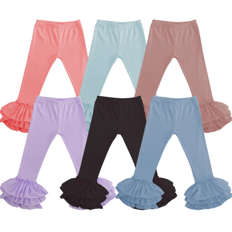 Дышащая детская одежда, брюки с оборками, одежда для девочек с 3 слоями оборками, детские однотонные брюки