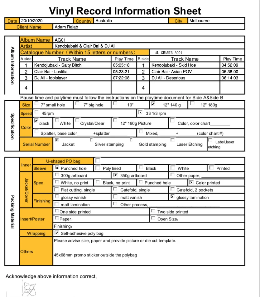 Product Name | 7'' 10''12'' Vinyl Pressing |