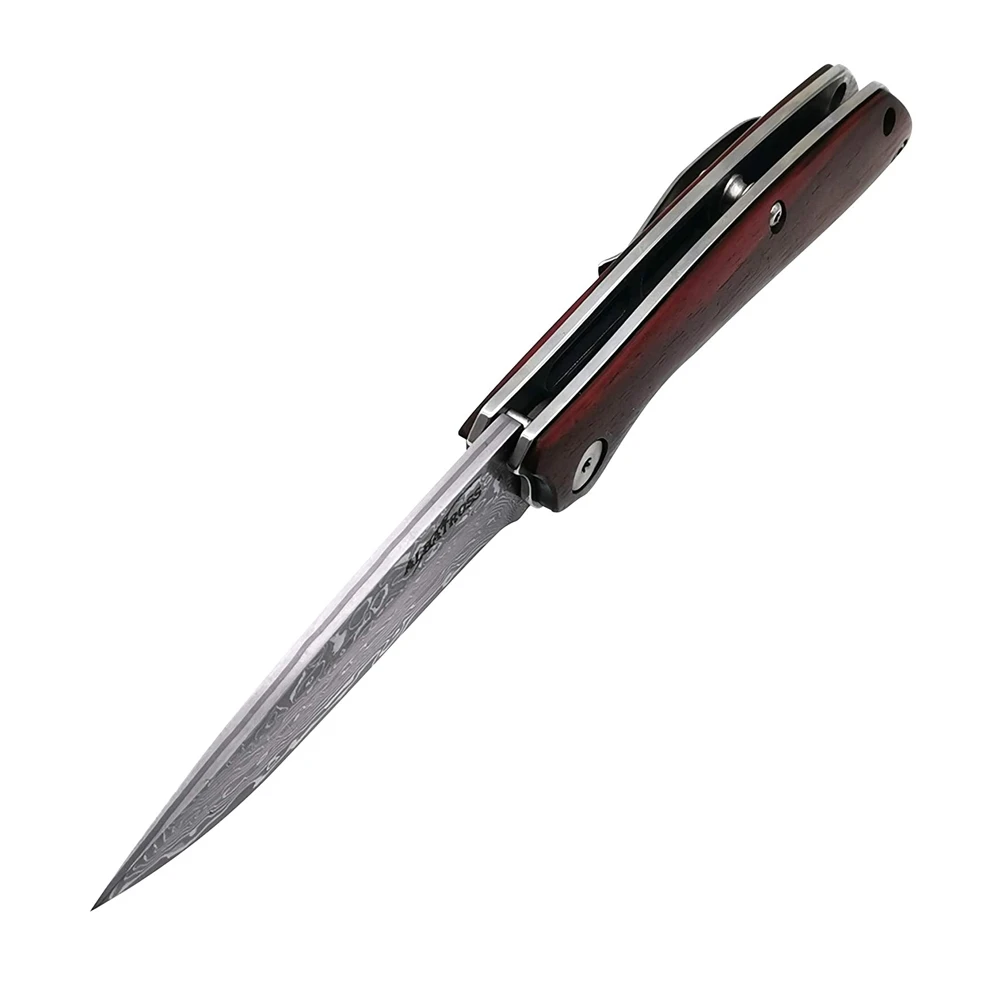 Карманный нож из дамасской стали по разумной цене уличный складной с деревянной ручкой задний замок для промышленного использования
