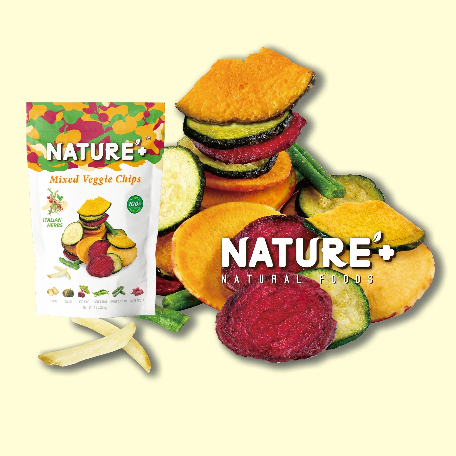 Ingredients | Yellow Sweet Potato, Squash, Beetroot, Green Bean, Green Zucchini, Potato, Herbs-Rosemary Seasoning (Natural flavouring substances, Maltodextrin, Sucrose, Salt, Starch, Silicon dioxide), Non-GMO Canola Oil or Sunflower Oil, Tapioca Starch, Sea Salt, White Pepper, Black Pepper |