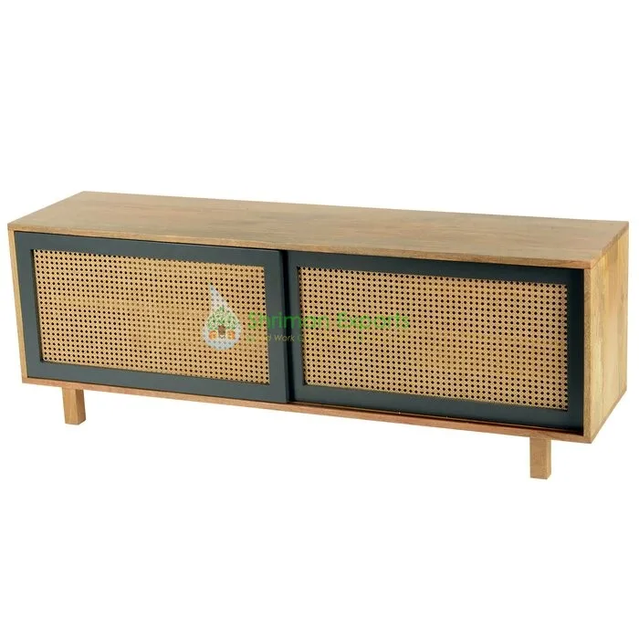 Простой дизайн тканые трость из тикового дерева домашний развлекательный центр Медиа-Консоль тумба под ТВ стенд шкаф гостиная мебель из натурального дерева