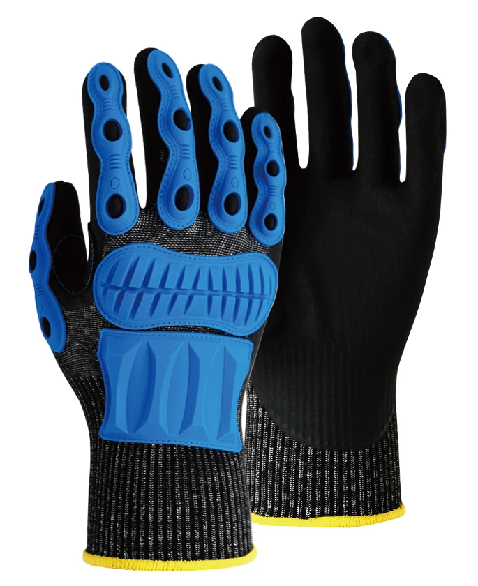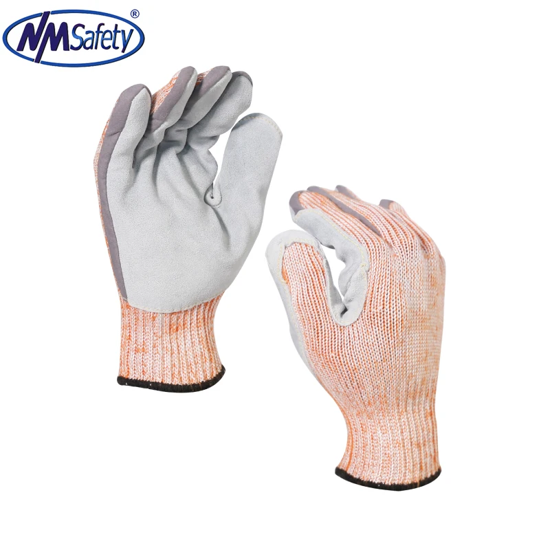 HANVO 13g HPPE/сталь/стекловолокно/полиэфирная подкладка с микро-пенопластовым нитрилом с шитьем ПВХ на спине, кожаные перчатки на больших пальцах