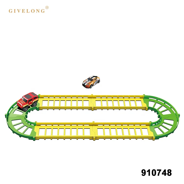 Детский сборный пластиковый игрушечный поезд с металлическим автомобильным набором