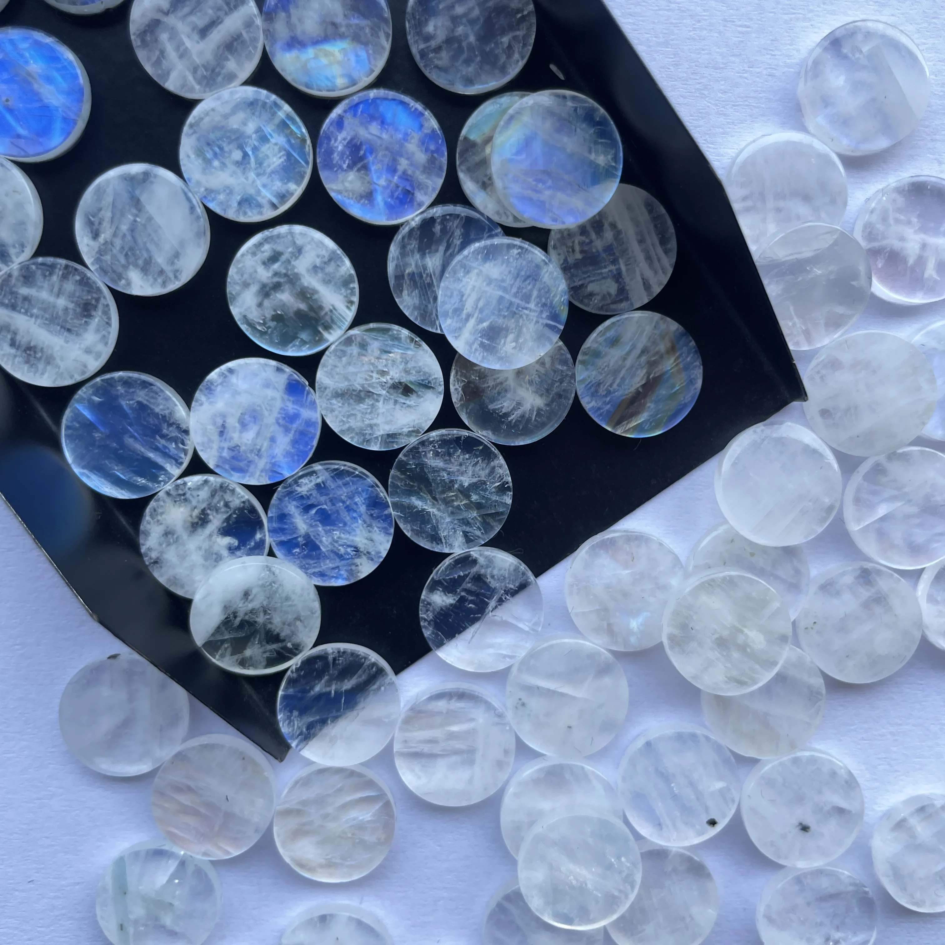 Натуральный белый Радужный Лунный Камень, 10 мм, 20 мм, гладкие плоские диски в форме монеты, незакрепленный драгоценный камень для изготовления ювелирных изделий, дисковые камни, задний тонкий