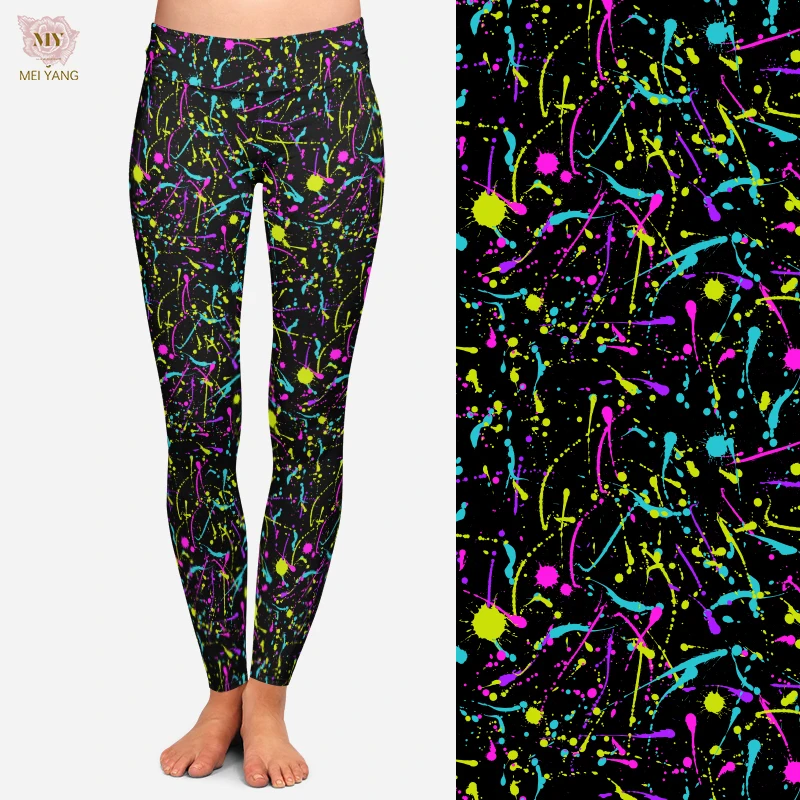 Неоновые леггинсы с рисунком брызг женские Леггинсы для йоги мягкие из 92% полиэстера 8% спандекса женщин