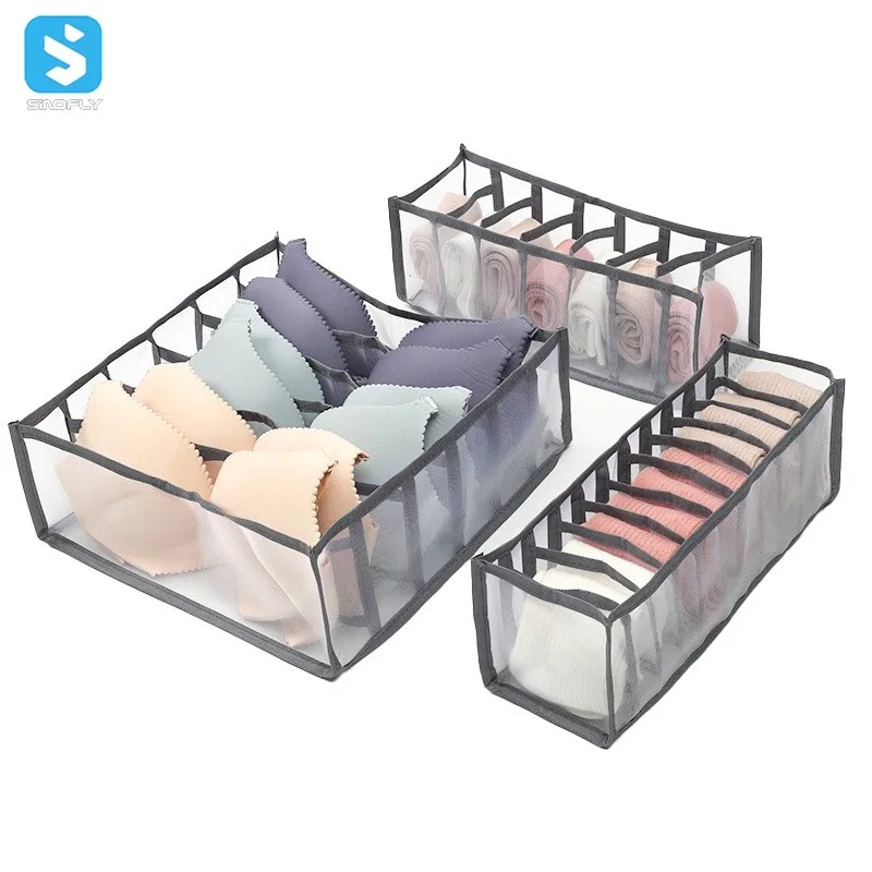 Лидер продаж, цена по прейскуранту завода, 3 шт./компл., складная коробка для хранения нижнего белья, органайзер для женского шкафа, сетчатые ящики
