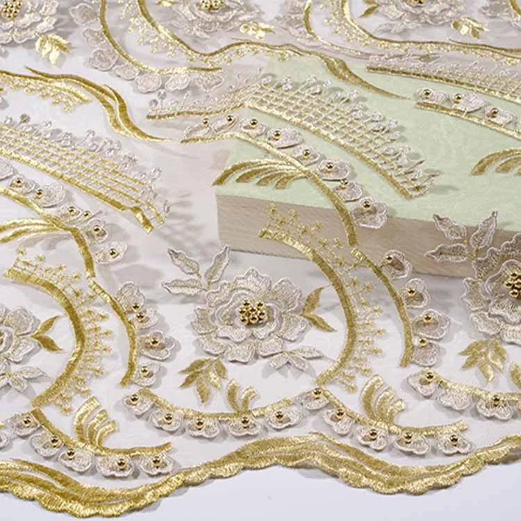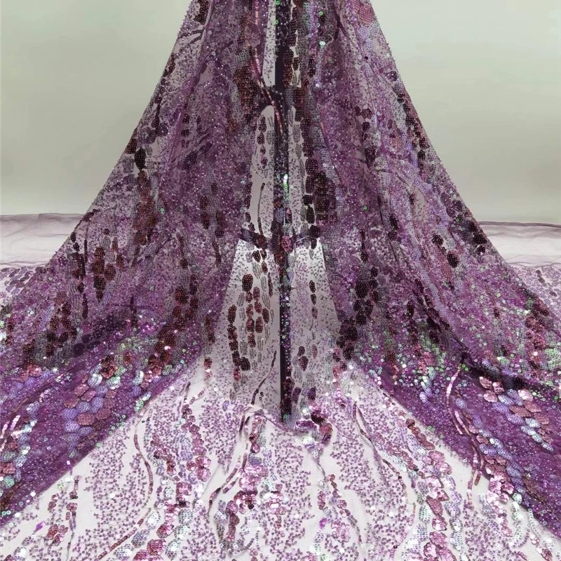 beautiful sequins tulle lace fabric by the yard for fashion fabric womens dress making french lace fabric with beads