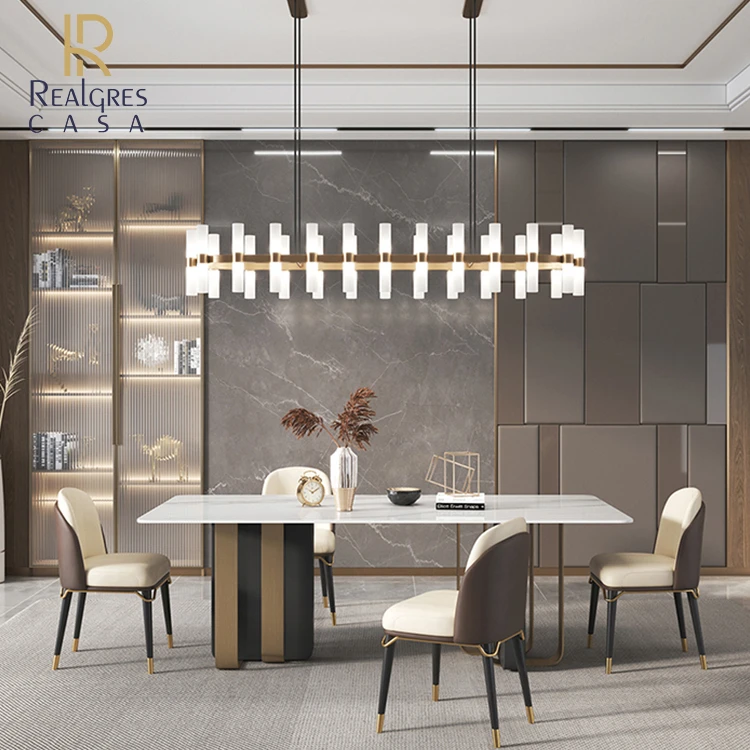 Обеденный стол столовая мебель белый кухонный стол и стулья, мраморной столешницей обеденный стол 6 местный