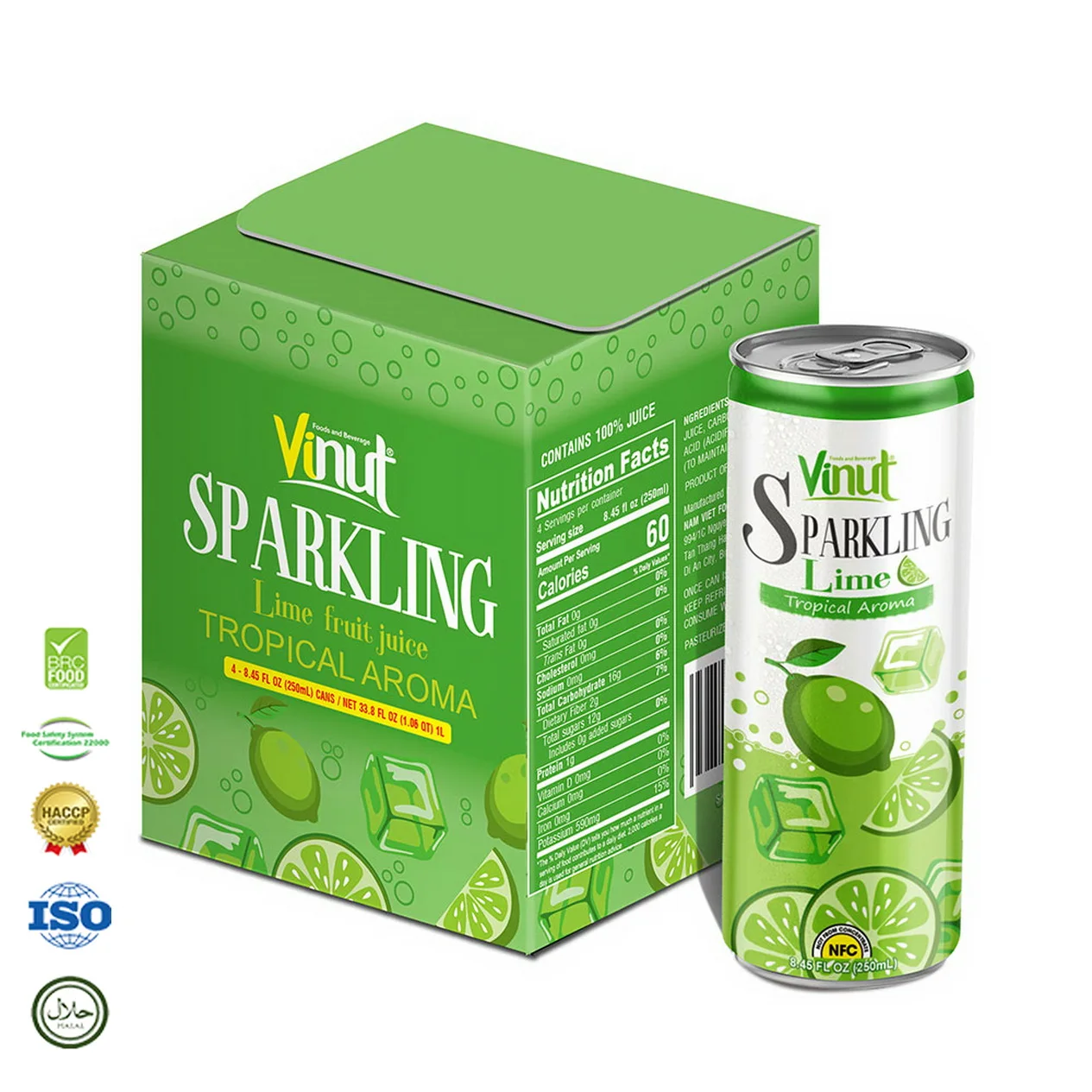 250ml Carbonated drinks VINUT Can (Tinned) Green tea & Honey Lemon White Label Factory No Sugar add Newest OEM