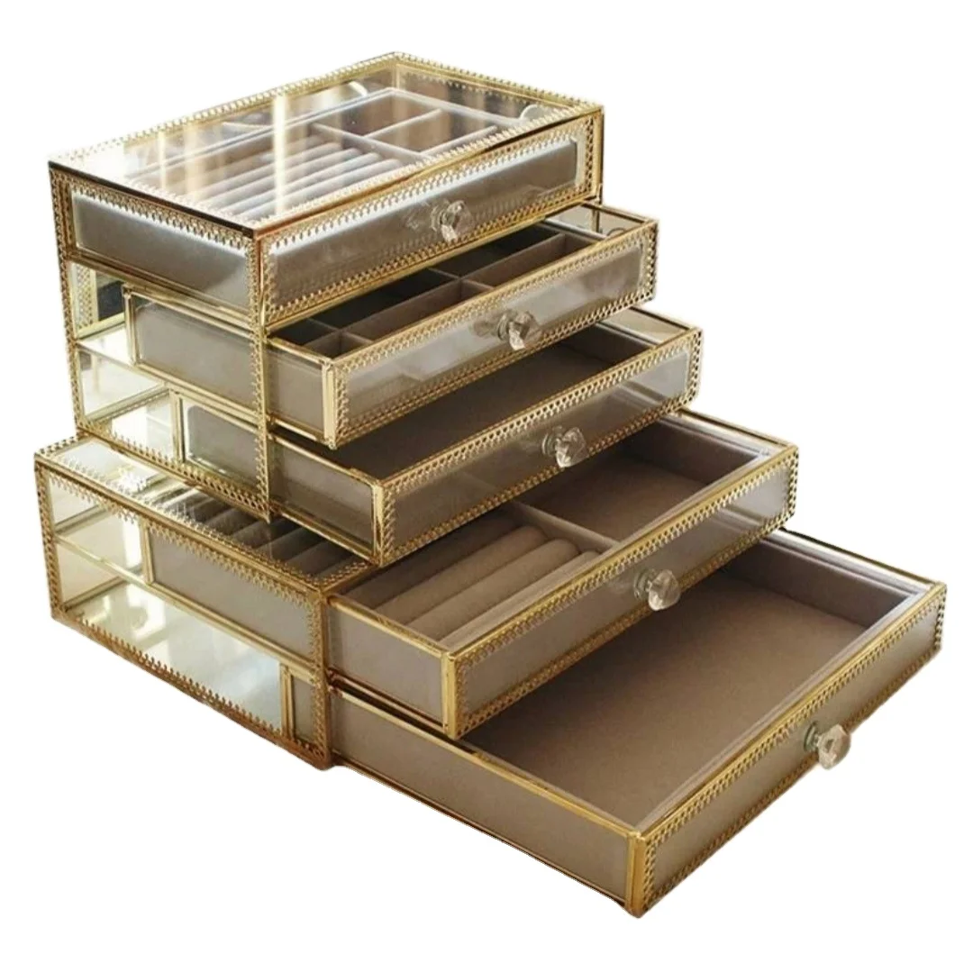 Glass- Brass Jewelry box for jewelry gold color glass- brass jewelry box