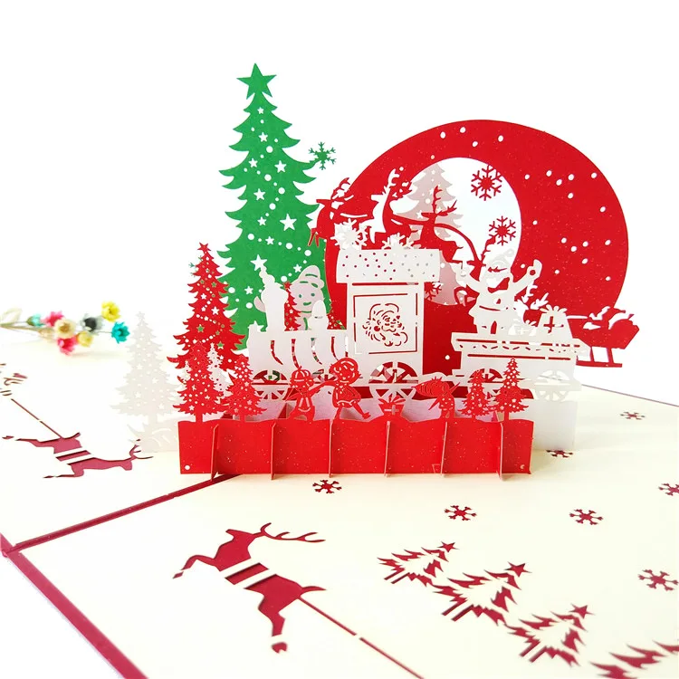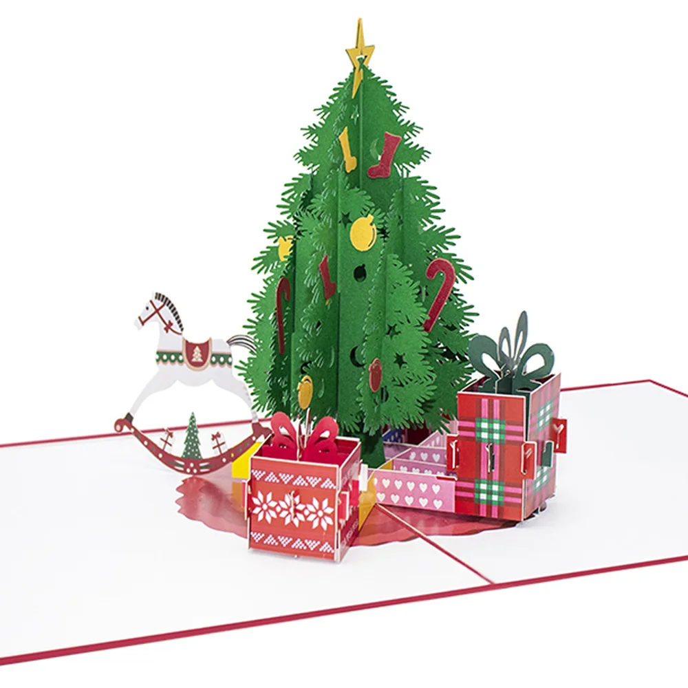 Выдвижная открытка с рождественской елкой 3d выдвижные открытки 3d Поздравительные открытки праздничные поздравительные подарки индивидуальный дизайн фабрика лазерной резки