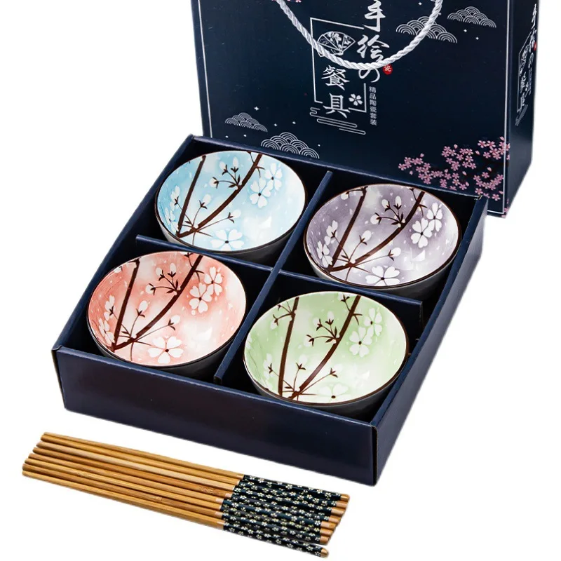 Набор посуды в японском стиле, домашняя посуда, сине-белая фарфоровая керамическая Подарочная миска, набор