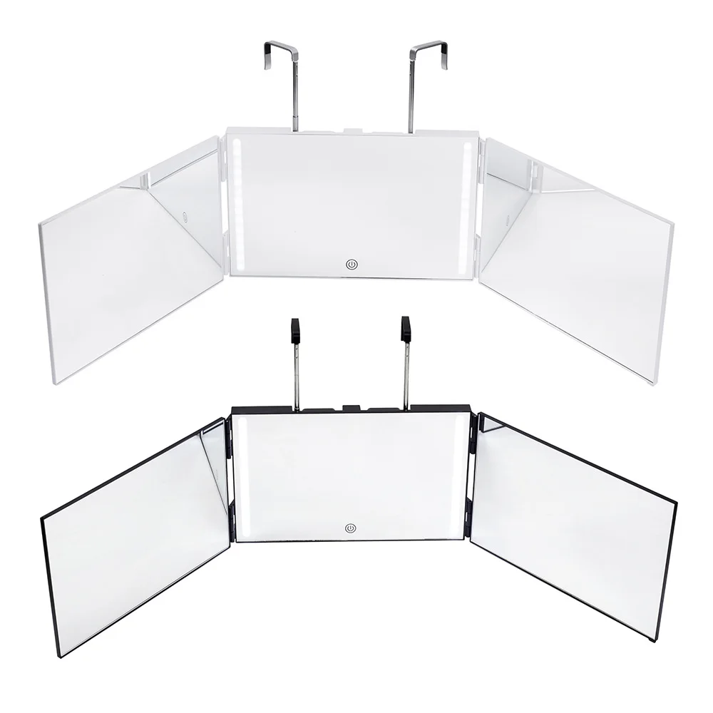 Подвесное 3-стороннее зеркало со светодиодными огнями, тройное самострижемое зеркало с регулируемым углом обзора 360 градусов