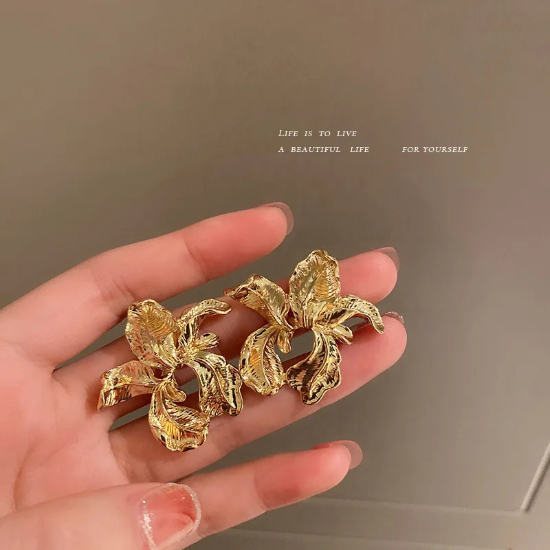 Модные ювелирные изделия серебро 925 пробы серьги с золотыми цветами неправильной формы французские металлические холодный ветер корейские красные