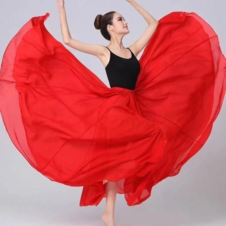 Оптовая продажа, женская шифоновая юбка-макси с широким подолом 720 градусов, с запахом, трапециевидная пляжная Клубная одежда для танца живота, длинные юбки