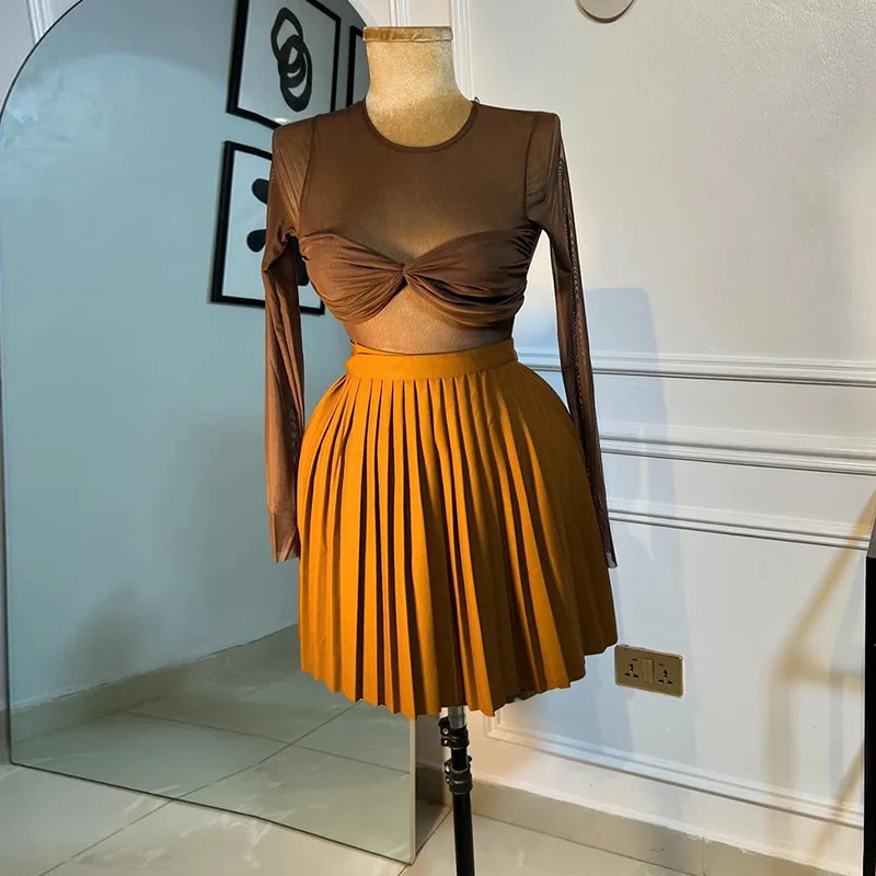 Новый дизайнерский короткий топ мини-юбка с высокой горловиной для пикантных сетчатых комплектов из 2 предметов женская одежда