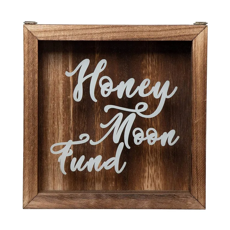 Оригинальный банк для монет, деревянная коробка для медового месяца, теневая коробка, отдельно стоящая/Настенная подвеска, деревянное ремесло, винтажная, деревенская, коричневая