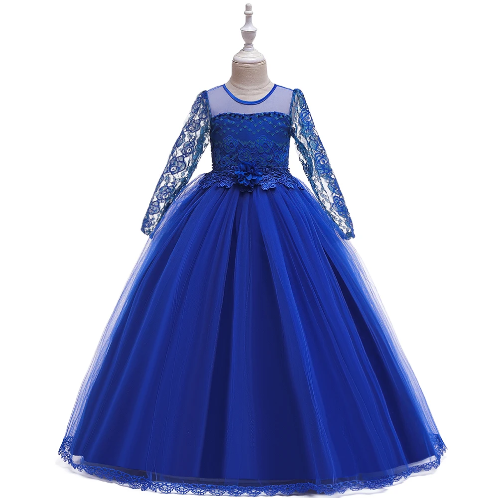 Meiqiai, лидер продаж, кружевные вечерние платья с длинным рукавом для маленьких девочек на свадьбу и вечеринку, LP-227