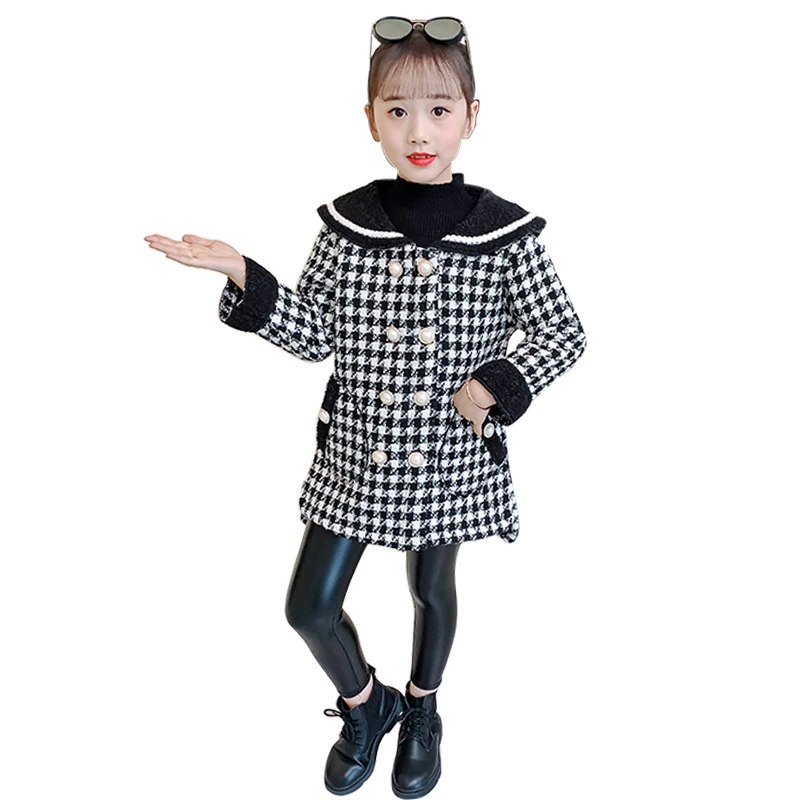 Оптовая продажа, детские зимние пальто по индивидуальному заказу, 2021, новый дизайн, элегантная клетчатая теплая верхняя одежда для девочек, утепленная милая куртка для маленьких девочек