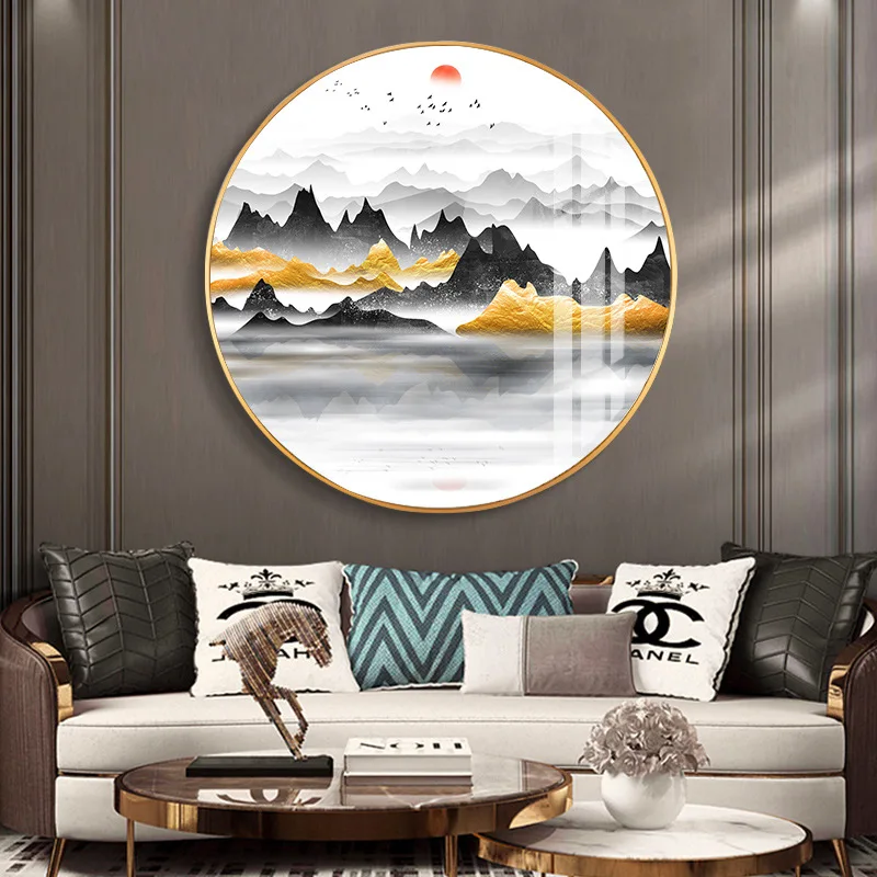 Настенная картина в скандинавском стиле, HD принты, китайский стиль, холст, горы, Круглый постер, украшение для дома, картина, модульные картины для спальни