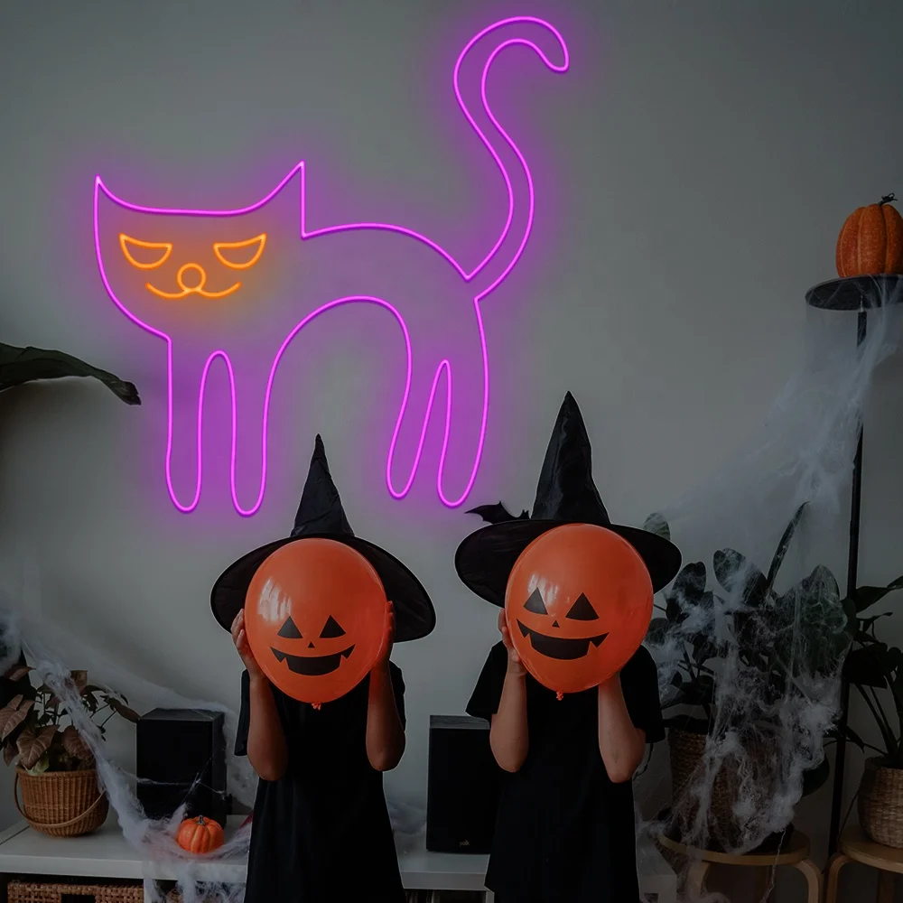 Бесплатная доставка 2021 новый дизайн Прямая поставка Кот атмосфера ужаса S-Neon светодиодная неоновая вывеска для украшения Хэллоуина
