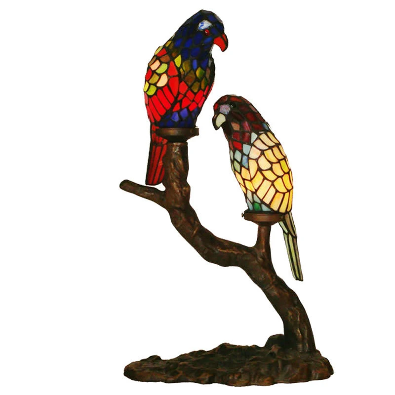 Прикроватные стеклянные причудливые ретро лампы в стиле арт-деко Роскошные светодиодные маленькие декоративные светильники Тиффани креативные настольные лампы в виде птиц и попугаев