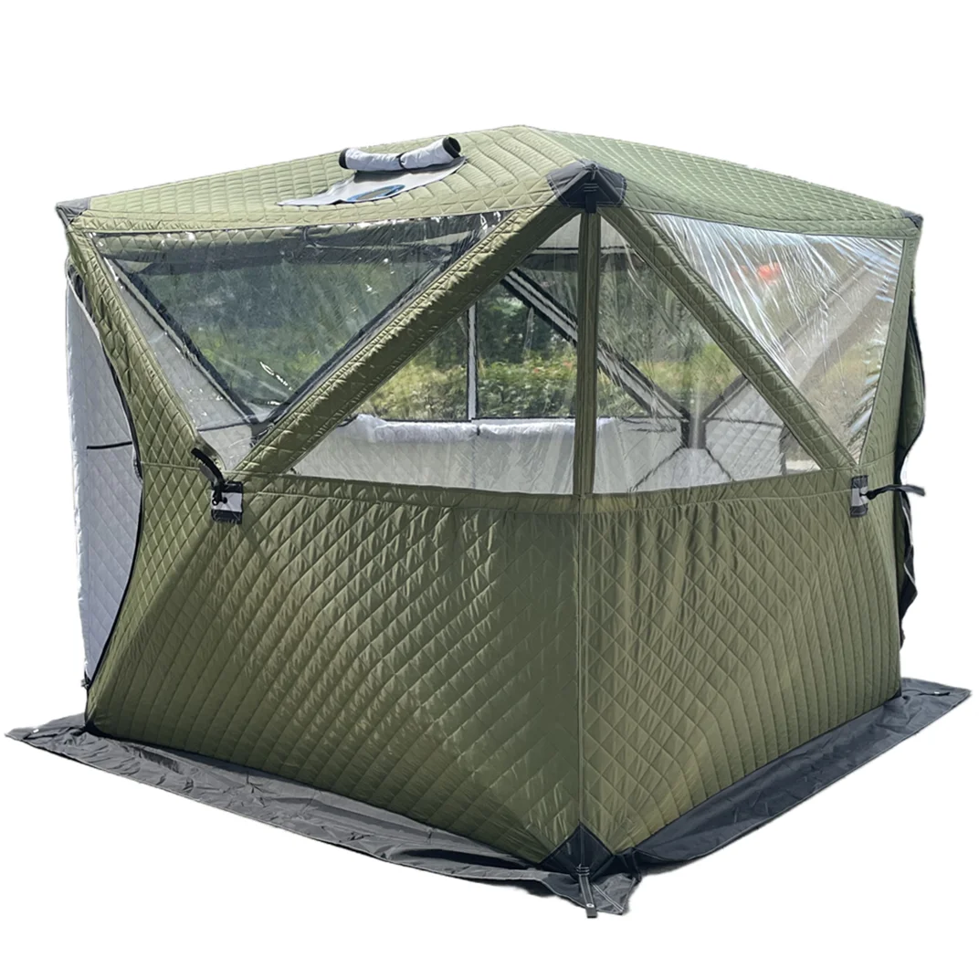 Большая трехслойная Водонепроницаемая изоляционная кубическая Выдвижная палатка с большим окошком, прозрачная воздушная сауна-палатка с дымовым отверстием