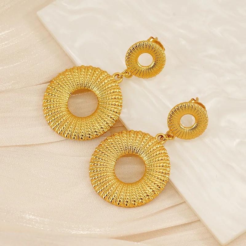 Новые 18-каратные позолоченные серьги из нержавеющей стали модные Универсальные круглые дизайнерские титановой оптом