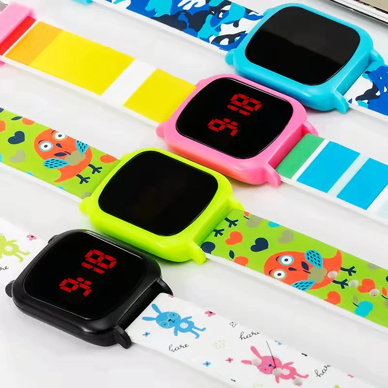 Водонепроницаемые светодиодные часы с браслетом милые детские цифровые изображением головы животного из