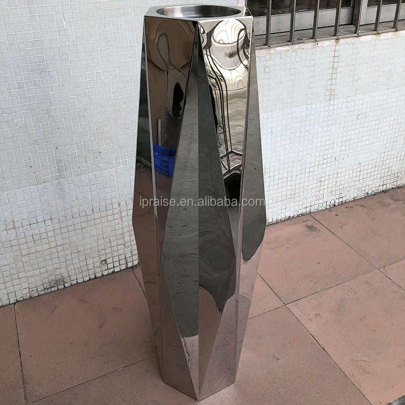 Большая высокая металлическая ваза/цветочный горшок из нержавеющей стали