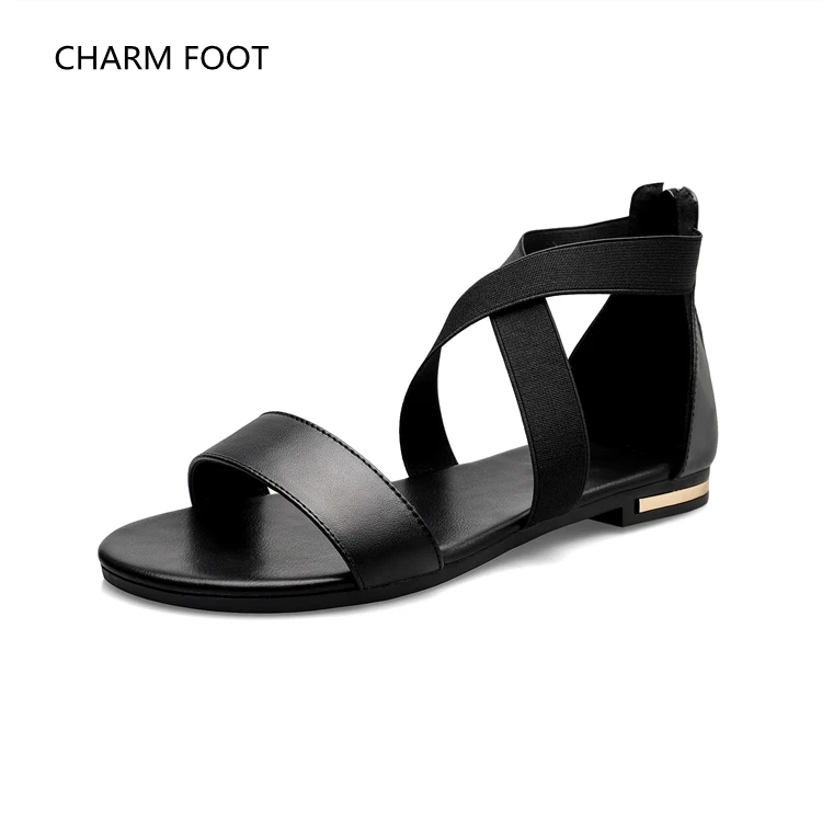 Женские босоножки на плоской подошве черные повседневные большого размера с перекрестной пряжкой лето 2021