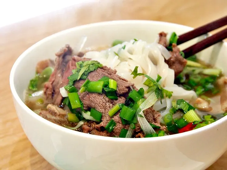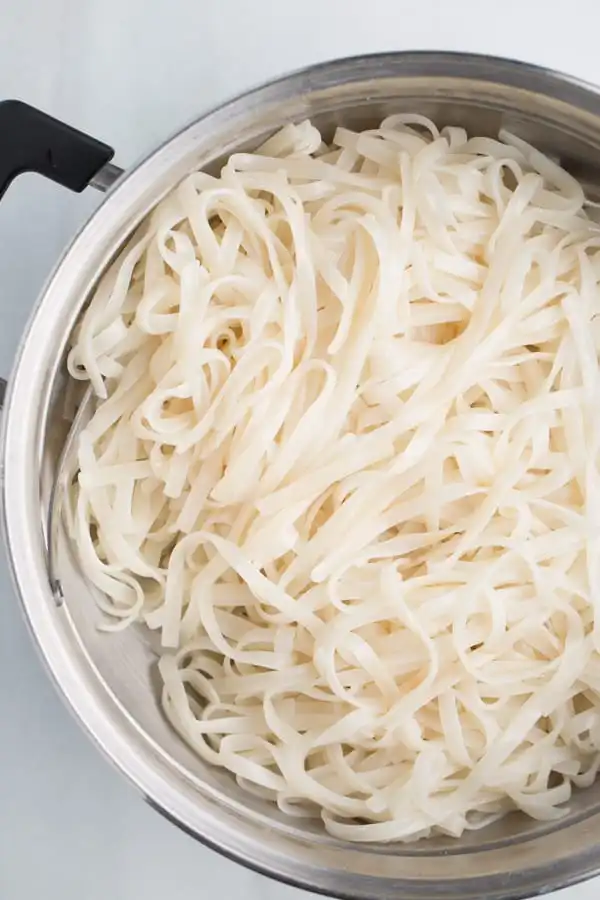1. Soak dried rice noodles (pho noodles) in cold water for 15-30 minutes, then put them into boiling water for 3 minutes. Take noodles out and keep them under cool tap water for a couple of minutes to stop them from sticking together.
