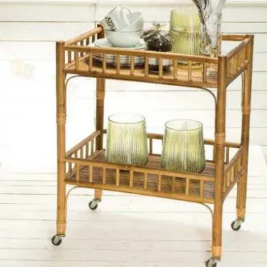 Бамбук 2 ярусная полка с тележка на колесах non K/D Вьетнам открытом воздухе