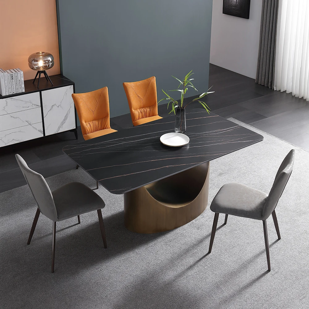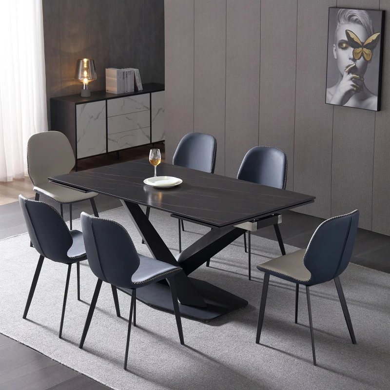 Современный простой Прямоугольный Обеденный стол с мраморной поверхностью и металлическим основанием, обеденный стол из спеченного камня, набор домашней мебели