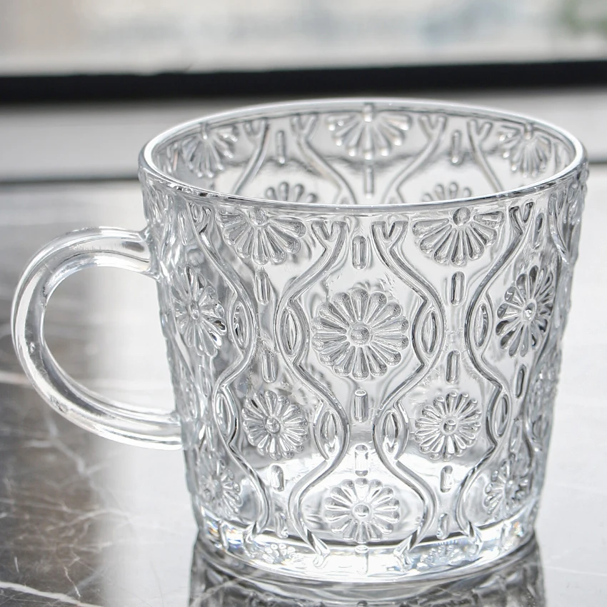 Модная оптовая продажа Роскошная стеклянная чайная чашка с ручкой стол для ресторана домашняя Питьевая Ретро стеклянная кофейная кружка